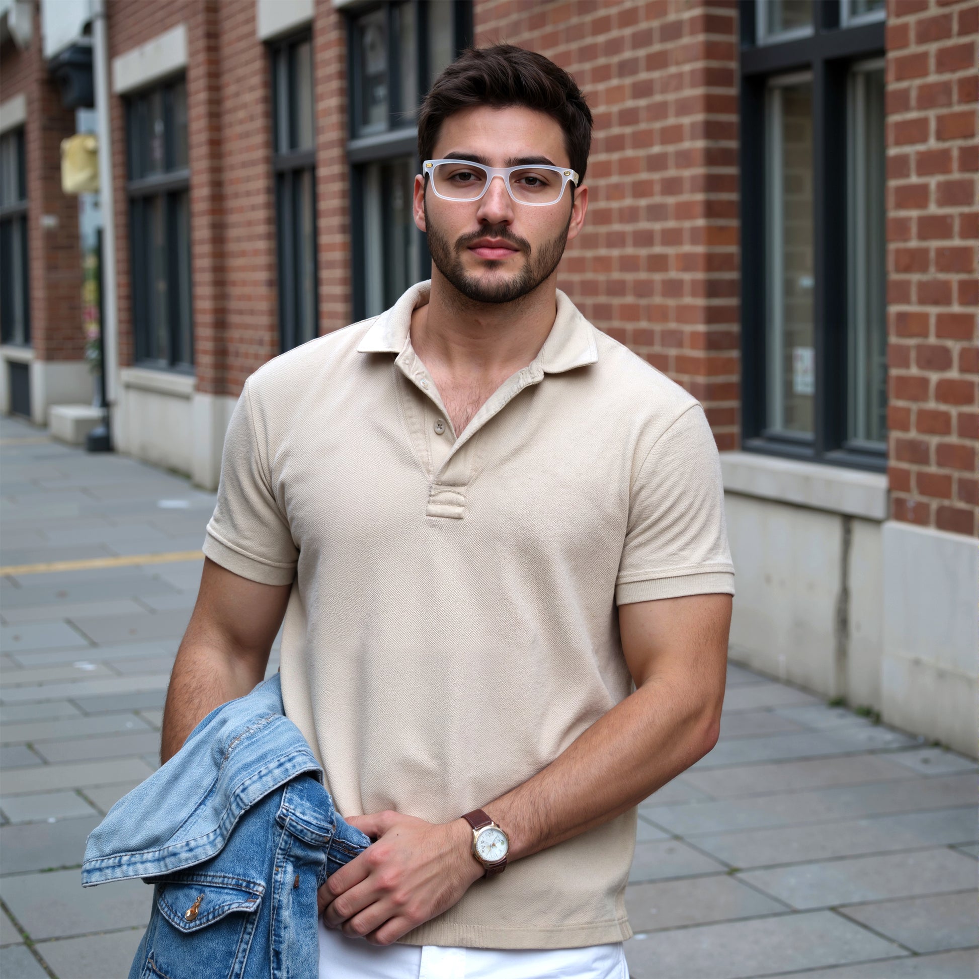White Rectangle Rimmed Eyeglasses for Men